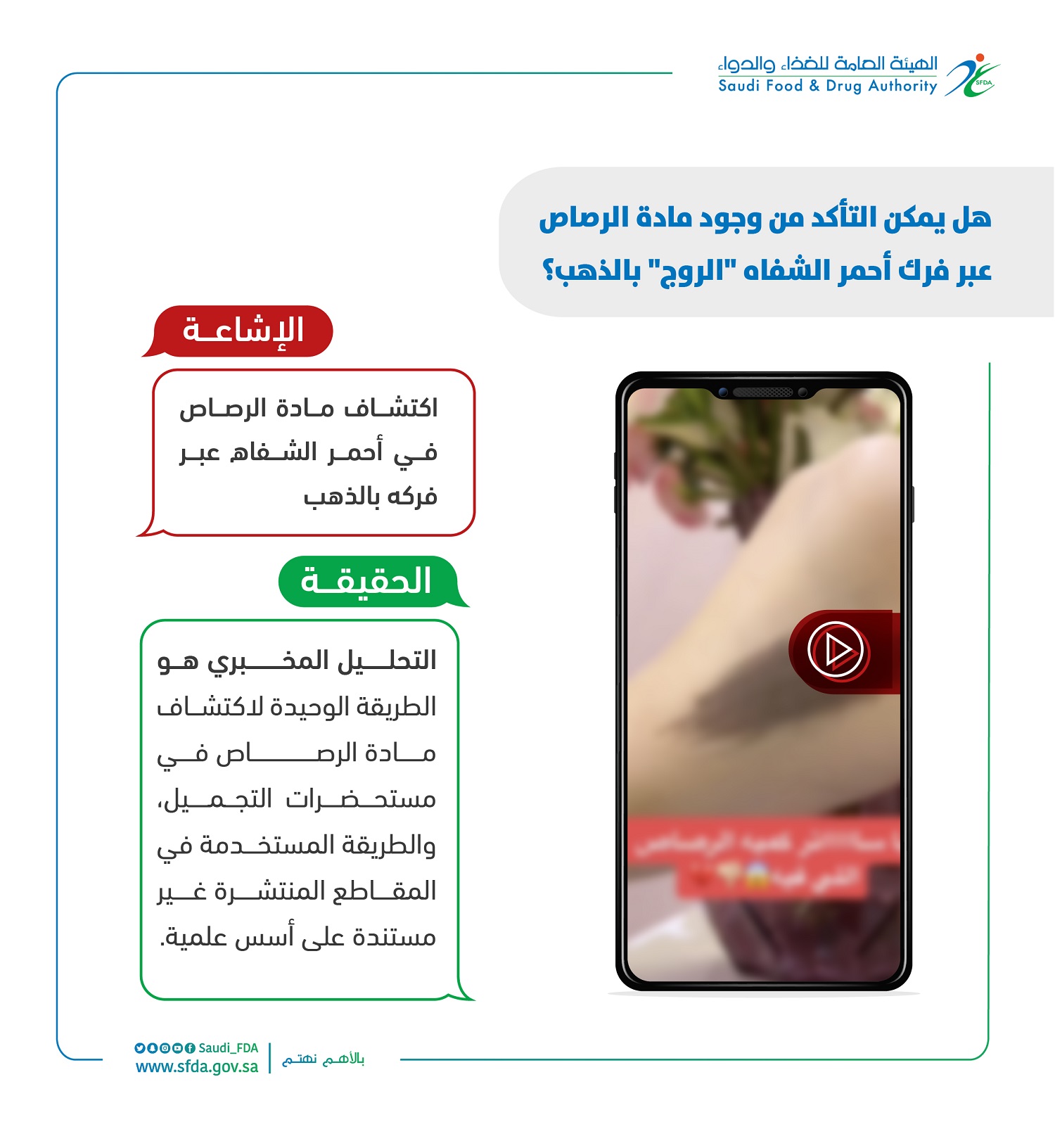 التحليل المخبري هو الطريقة الوحيدة لاكتشاف مادة الرصاص في مستحضرات التجميل، والطريقة المستخدمة في المقاطع المنتشرة غير مستندة على أسس علمية.