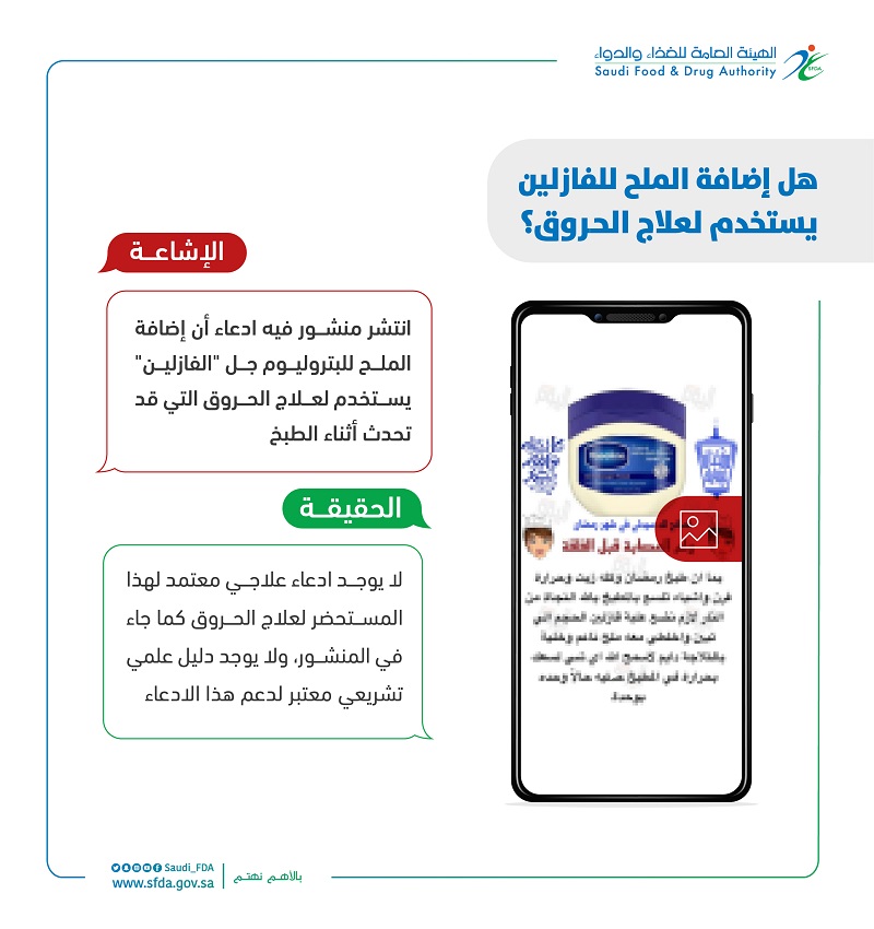 انتشر منشور فيه ادعاء أن إضافة الملح للبتروليوم جل "الفازلين" يستخدم لعلاج الحروق التي قد تحدث أثناء الطبخ